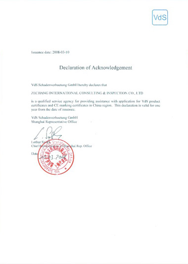 VDS是欧盟最权威的防火安全证书之一